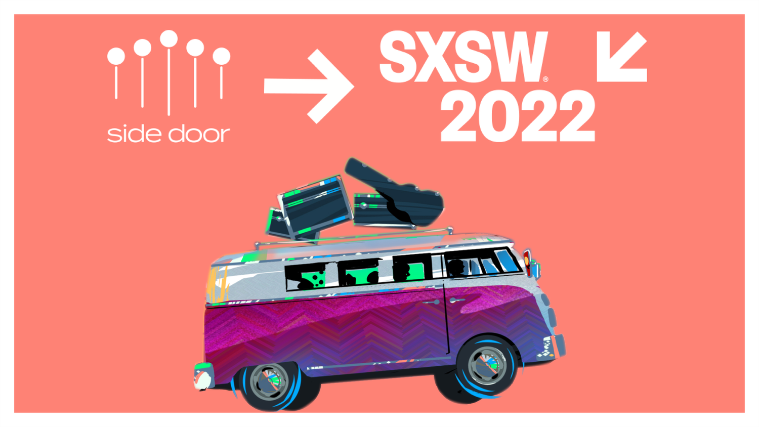 Side Door announces a partnership with SXSW called Side Door to SXSW, which will book curated tours for five selected SXSW showcasing artists traveling to Austin, TX for this year's festival and conference. Each touring experience will be documented along the road, culminating with an official Side Door to SXSW showcase on March 18th, 2022 at the Drafting Room.