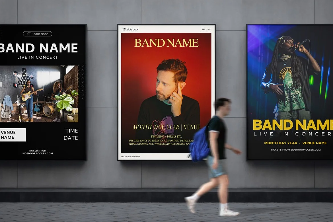 The best promotion strategy? Use all three! Print posters create local buzz, social media feed posts expand your reach, and story posts keep the excitement alive. With Side Door’s FREE customizable Canva templates, you can easily create stunning visuals that grab attention and boost ticket sales.
